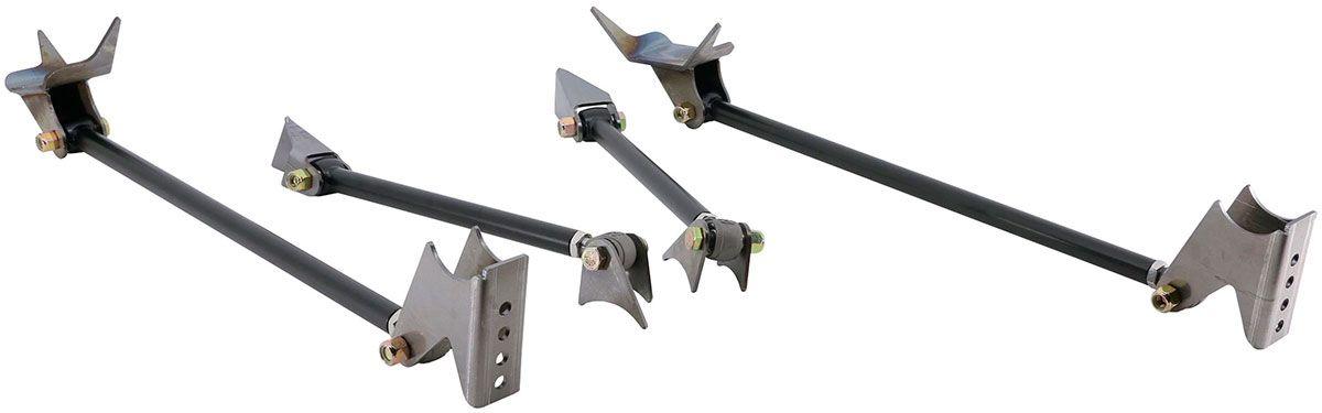 The triangulated version 4Link is a tubular version of the tried and true rear suspension that GM has used since 1964. Welding and basic fabrication skills are needed.As a result, the triangulated 4Link is highly adaptable to avariety of custom installations. The triangulated 4 link can use a CoolRide style airspring/bracket/shock arrangement, with a Coil-Over,or a rear Shockwave as an upgrade option. For the professional shop or advanced installer, the triangulated 4Link is the top choice. Now Includes R-Joints!