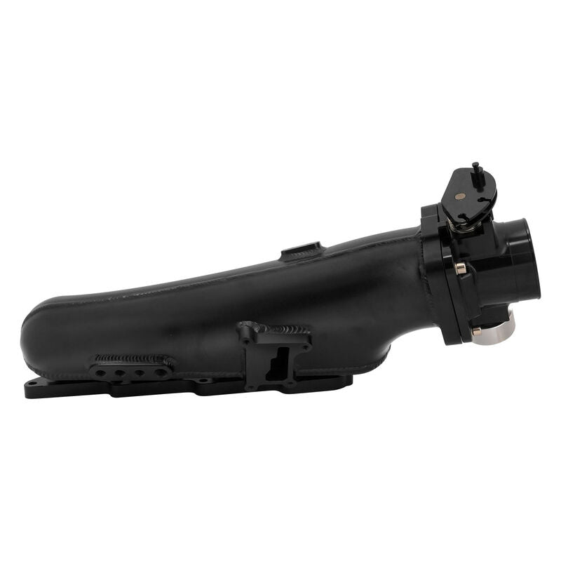 Proflow's fabricated aluminium intake manifold kits provide excellent mid range torque whilst dramatically improving top end power and is ideal for anyone looking to build an ultra responsive street or drag car. This intake features a 76mm throttle body seals that seals with an o-ring and will bolt to any vehicle that was running a mechanical throttle body beforehand, using the supplied cable bracket. With a heavy duty billet flange, this manifold will perform best with any upgraded turbo packages and other aftermarket bolt ons. This kit comes complete with a 17mm ID fuel rail, fittings and all necessary hardware for mounting. It also includes a radiator hose and water-neck relocation kit which allows the remote mounting of the water neck to clear the manifold body.