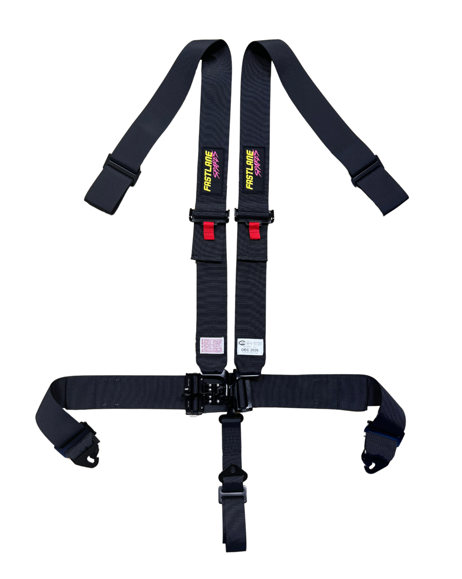 This premium quality Fast Lane Spares 5-point harness features a traditional lever latch/link style buckle assembly, making it an excellent choice for Stockcars, off-road trucks and drag racing. It provides secure and comfortable fastening with its wrap-style design.