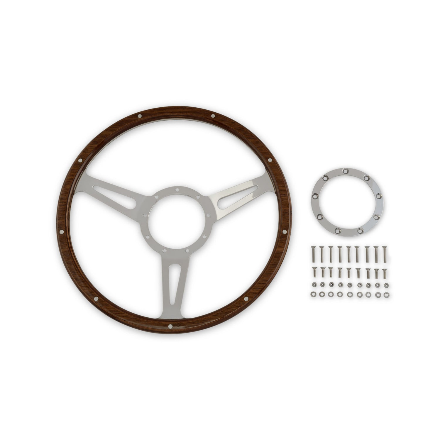 Brand Scott Drake Category Body Diameter 14 Emission Code 6 Grip Material Mahogany Horn Button Included No Material Aluminum part type Steering Wheel Product Type Steering Wheel Spoke Quantity 3 Sub Category Steering Wheel Universal Or Specific Fit Specific Fit Warning California Proposition 65 -