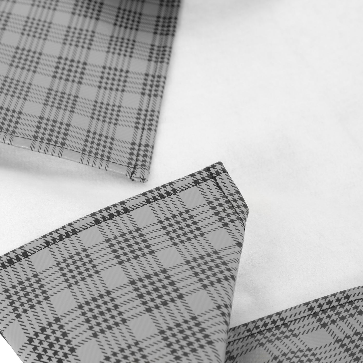 Vinyl tire cover in a Grey-Black-White plaid print provides some custom classic styling to your tire cover. High-quality construction for long-lasting durability, all made in the USA.