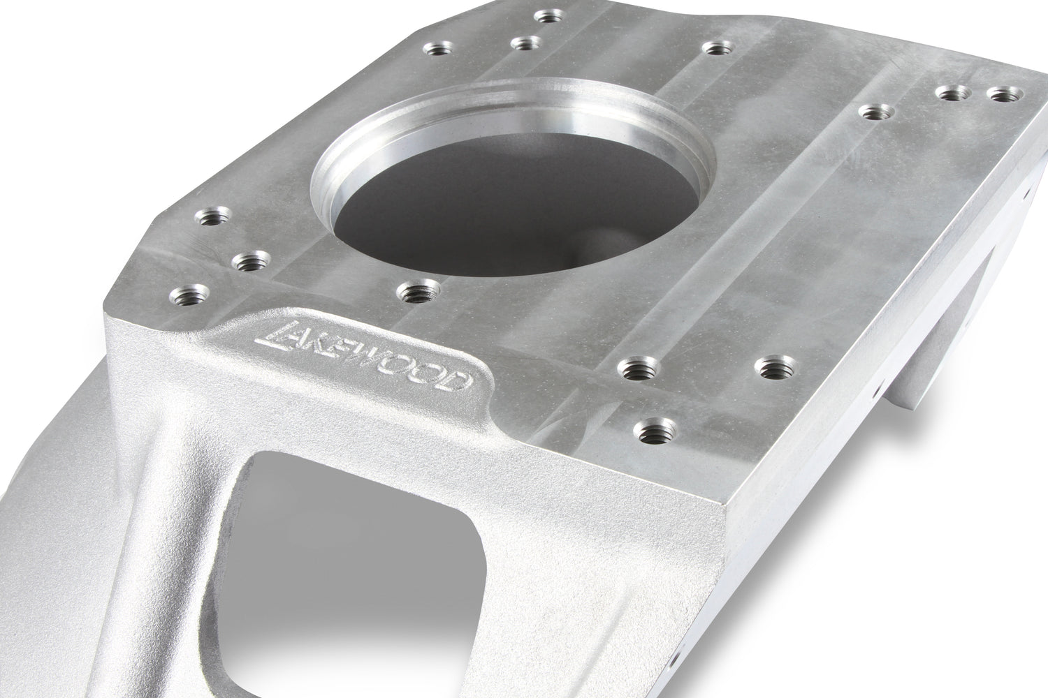 This Lakewood cast aluminum bellhousing connects Big Block Mopar engines to Mopar 3-Speed and 4-Speed Transmissions (A-833, A-903, A-250, and A-230) or Ford-style TKX and TKO transmissions. Designed as a compact, lightweight option for transmission swaps or upgrade. It can use either a 130 or 143-tooth flywheel and a 10.5 or 11-inch clutch. It is suited for factory-style mechanical or hydraulic clutch actuation and has dual starter positions to provide ultimate combination options and fitment. Tested with O.E. (original equipment) style single disc 11-inch clutch. Included alignment ring sizes are 4.345-inch, 4.807-inch, and 4.850-inch I.D. (inside dimension)
